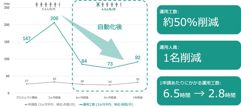 を確認しており、この削減値は自動化を実施するかを検討した時点での想定削減値とほぼ一致して