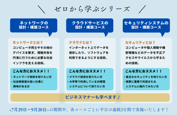 ①<東京会場:ゼロから学ぶ、ネットワークの設計・構築に挑戦コース>