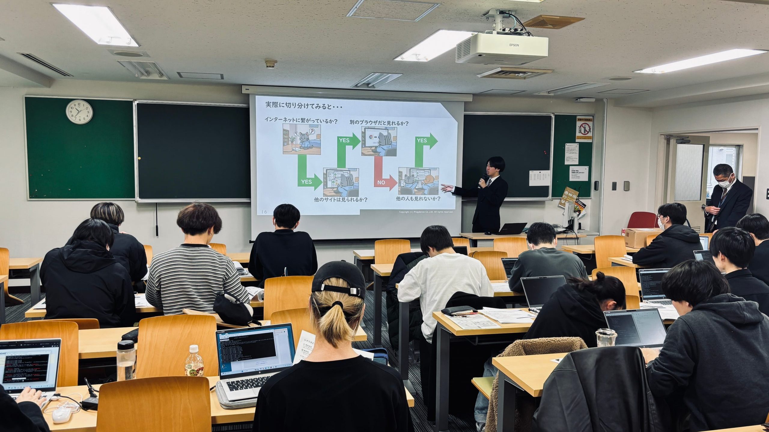 本授業は、実際のIT現場で求められる問題解決力や考え方を、学生の皆さんにより具体的にイメージしてもらうことを目的とした取り組みで、同校での特別授業としては今回が初開催となります。